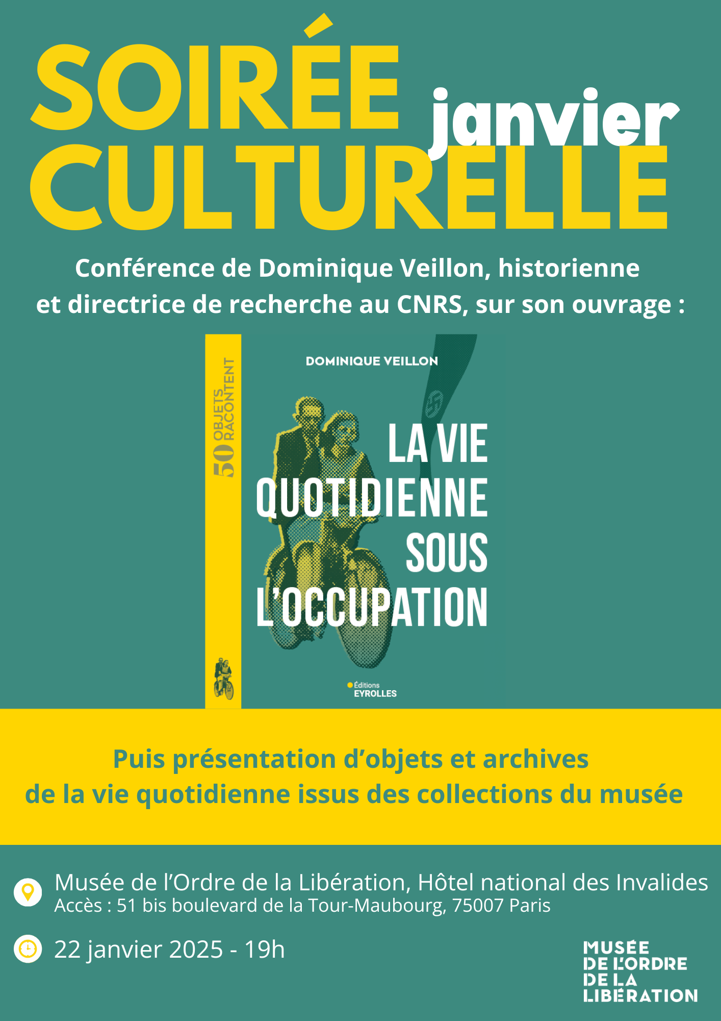La conférence sera accompagnée de la présentation de quelques objets issus de nos réserves, illustrant concrètement la vie matérielle sous l’Occupation.