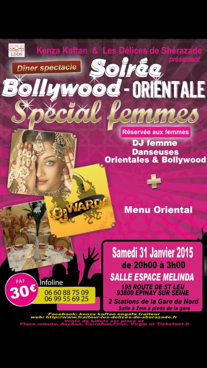 💝💝SALAM A PARTAGÉ merci SOIREE 100% FEMME ORiENTALE BOOLYWOOD samedi 31 janvier 2015 espace Melinda epinay sur Seine diner spectacle 30€ adulte ou enfant spectacle infoline 0660887509/0699556925 emplacement selon ordre de réservation A BIENTOT !!!!!!💝💝